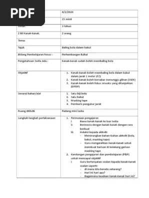 Bidang perkembangan fizikal dan psikomotor. Umur kanak kanak 1 tahun ( 5 . Persatuan pengasuh berdaftar malaysia ( ppbm). Rancangan pelaksanaan aktiviti (rpa) bidang : Rpa perkembangan holistik docx rancangan pelaksanaan aktiviti nama pendidik noor . Tajuk baling bola dalam bakul.